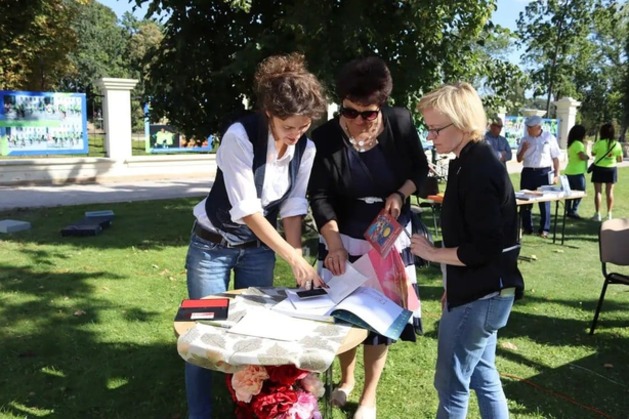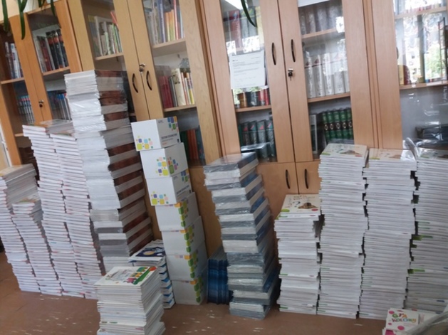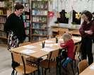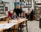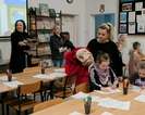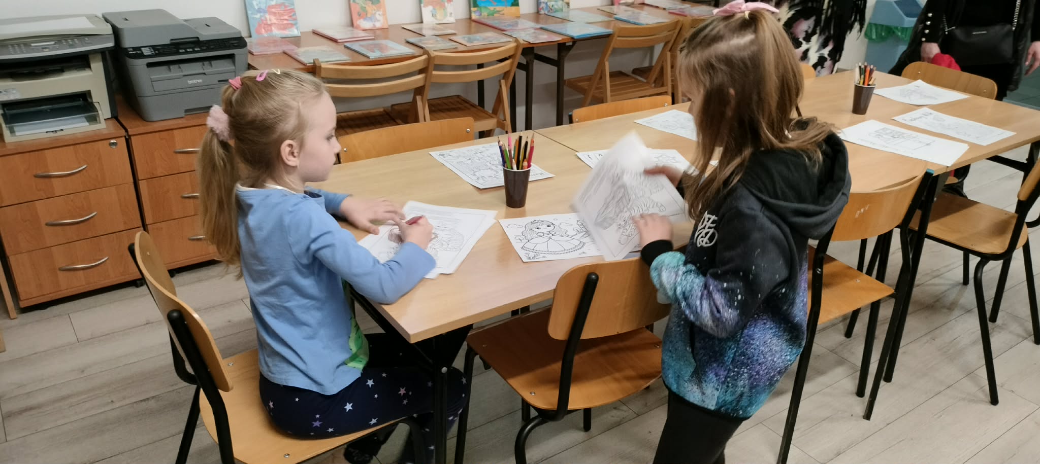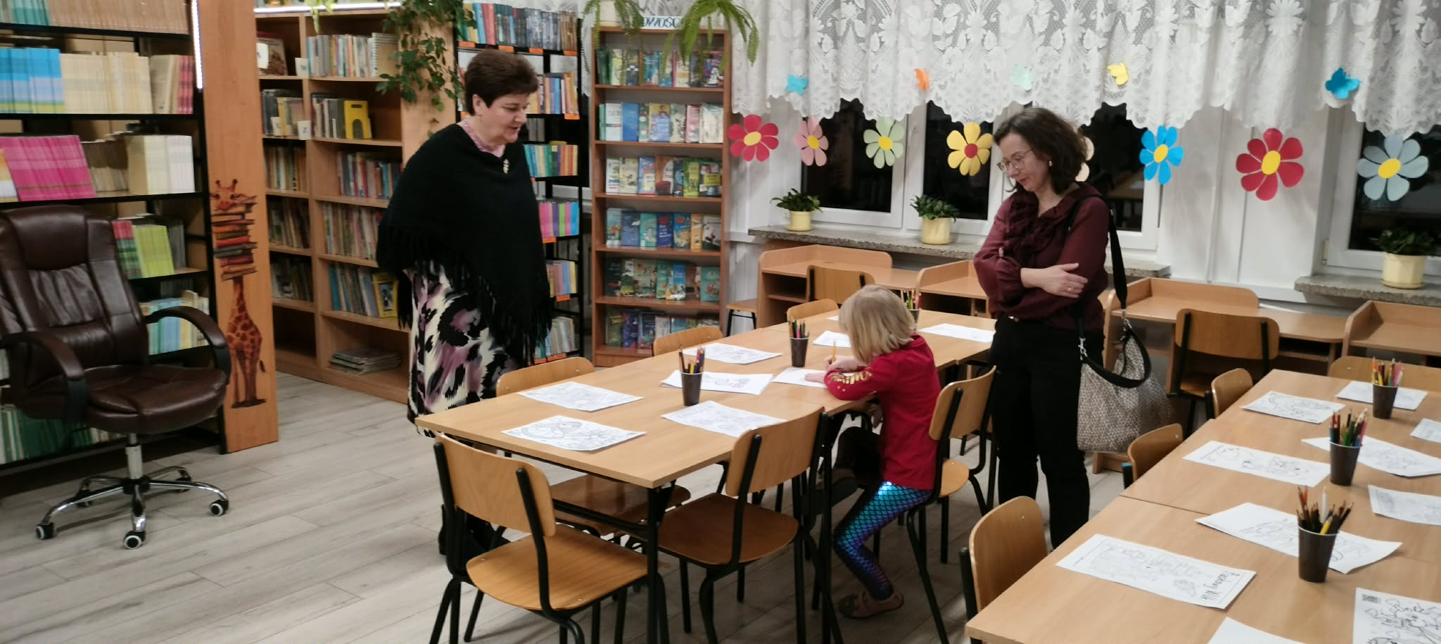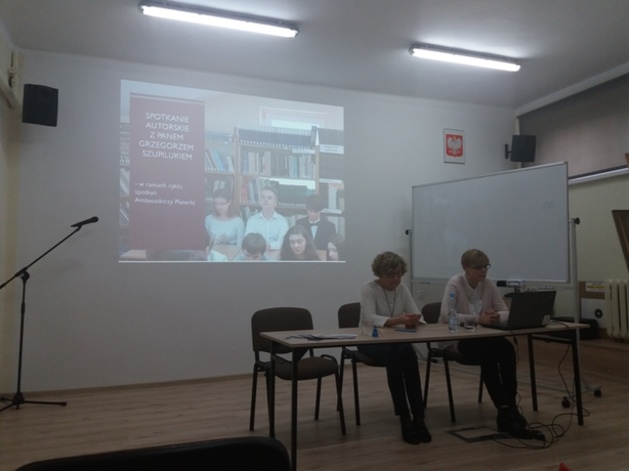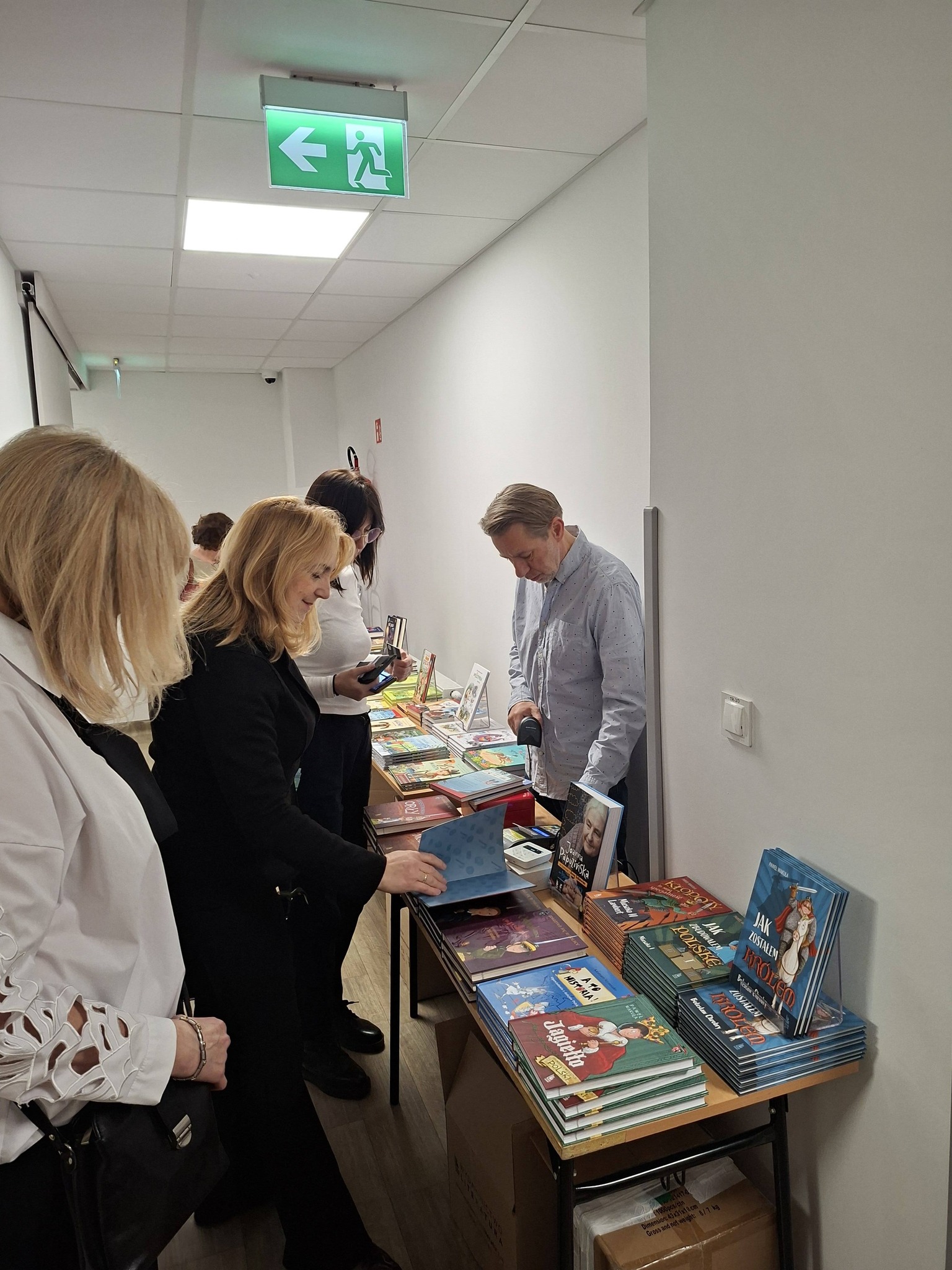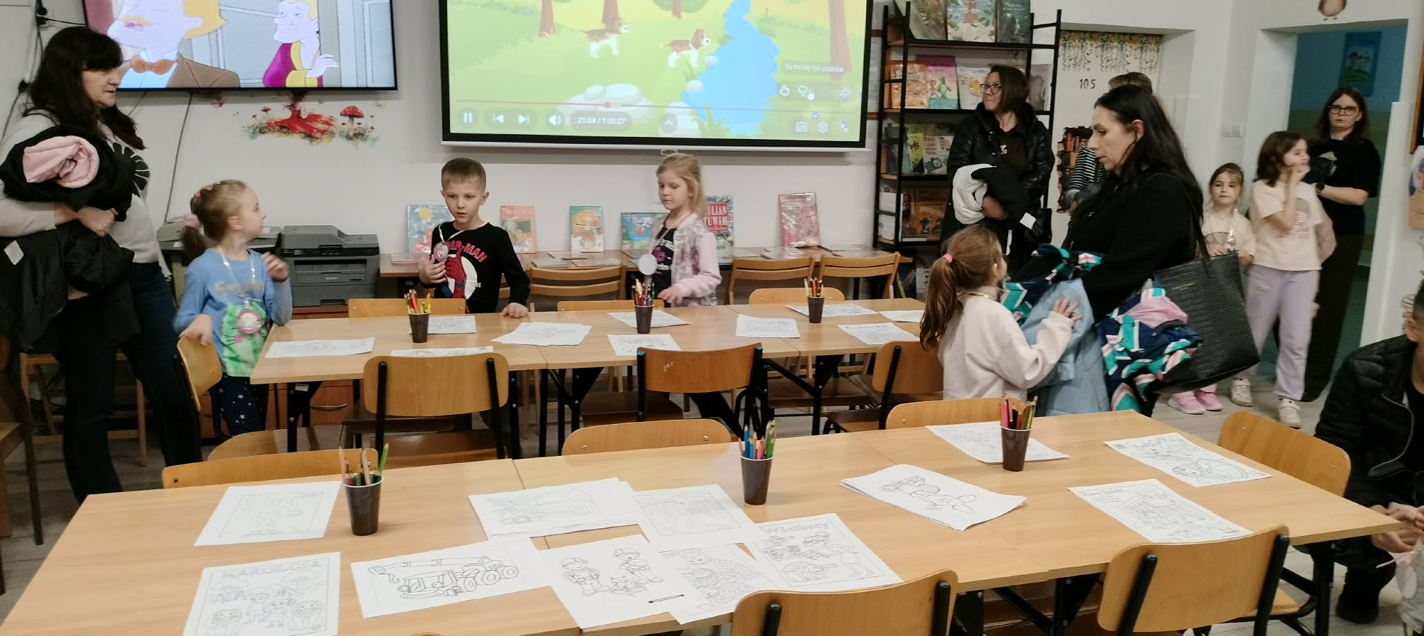 rodzice przebywający na terenie szkoły czytają książki,(każdy