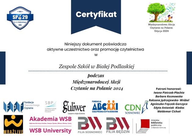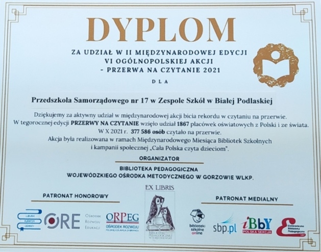 3. Czytanie odbywa się na przerwach międzylekcyjnych.
