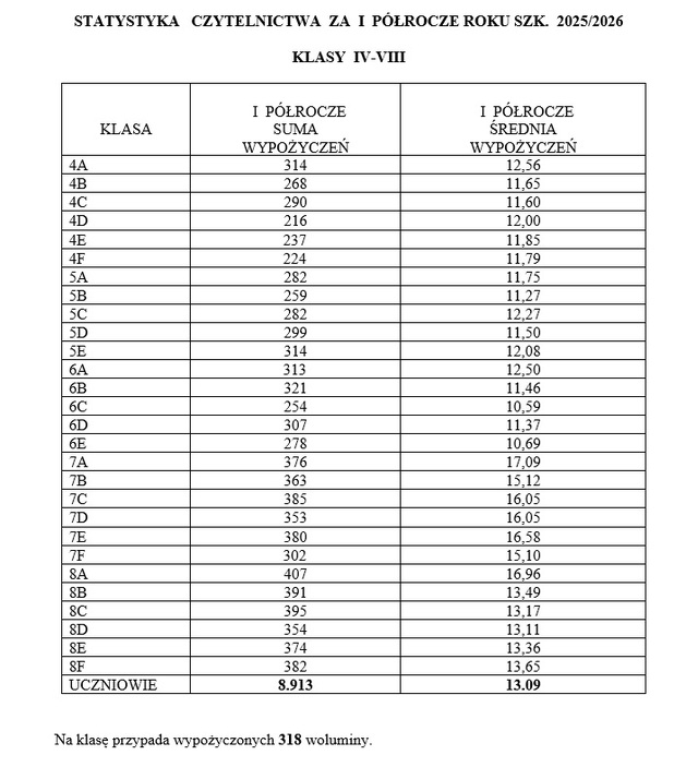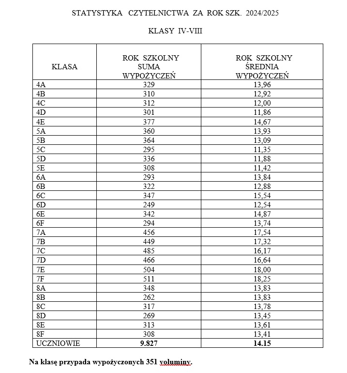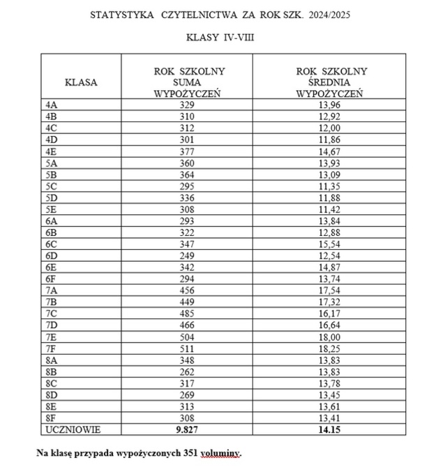 1. Klasa VII A – 454 książki, wych. p. W. STEFANIUK