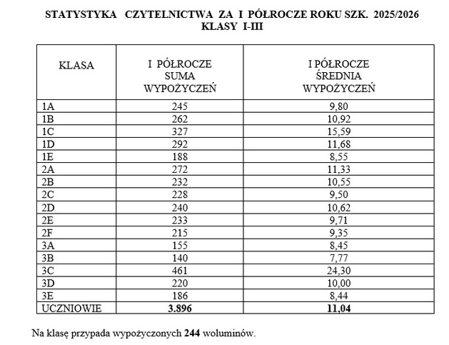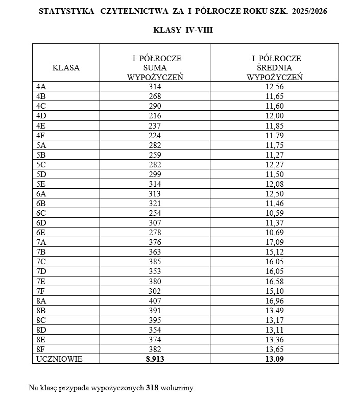 1. Klasa I E – 366 książek, wych. p. M. KRZYSIAK